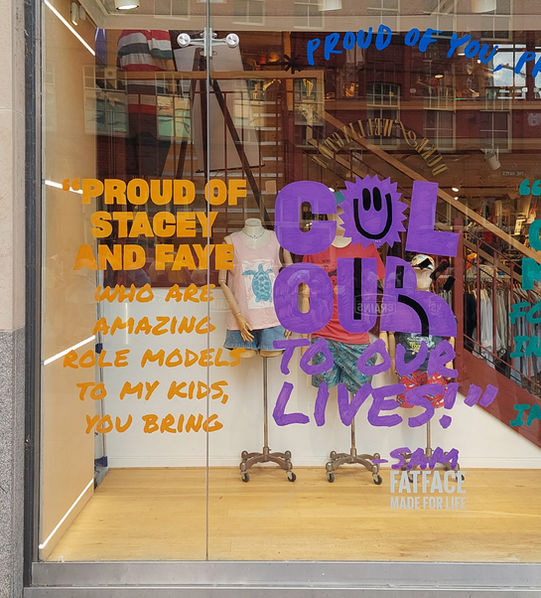 I was invited by FatFace to produce window art for Cardiff pride weekend using quotes from LGBTQ+ staff.